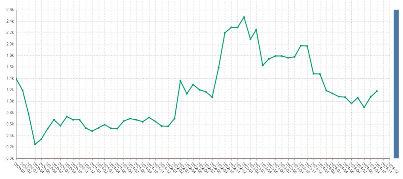 Это после антирекорда августа 2024 г., когда за защитой в странах ЕС обратилось всего 875 россиян. Это был самый низкий показатель с марта 2022 г. Именно в марте произошел резкий рост заявлений (1355). Следующий скачок (2195) случился после того как Путин объявил мобилизацию.