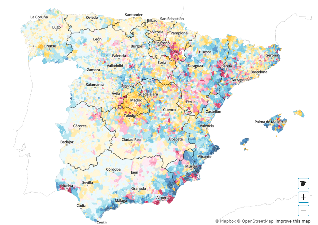 К такому и многим другим любопытным выводам пришли авторы залипательного материала, который вышел на ABC Sociedad. По сути, это масштабное исследование миграции в Испанию. В материале можно посмотреть, например, интерактивную карту городов с разбивкой по районам (вплоть до улиц!) с указанием процента населения, принадлежащего к определенной этнической группе.