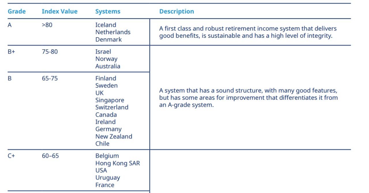 🥇В лидерах рейтинга - Исландия, Нидерланды и Дания. Пенсионные системы этих стран - лучшие в мире, им присвоен рейтинг A.