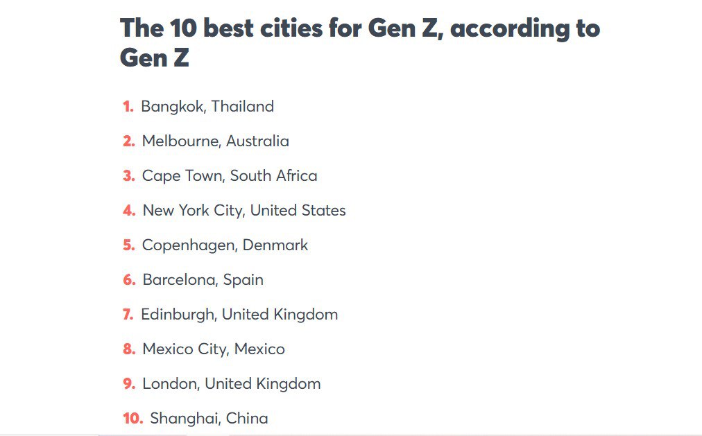 Нет, только не подумайте, что это про российских зэтников! 🙅♂️ Журнал Time Out представил ежегодный рейтинг лучших городов мира, куда в этом году впервые включили отдельную категорию — лучшие города для жизни поколения Z.