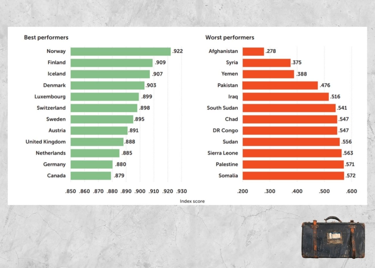 Первое место в рейтинге заняла Норвегия, далее следуют Финляндия и Исландия. Дания, Люксембург, Швейцария, Швеция тоже отличные варианты. Туда прямая дорога тем, кого не устраивает 53-е место, отведенное составителями рейтинга России.