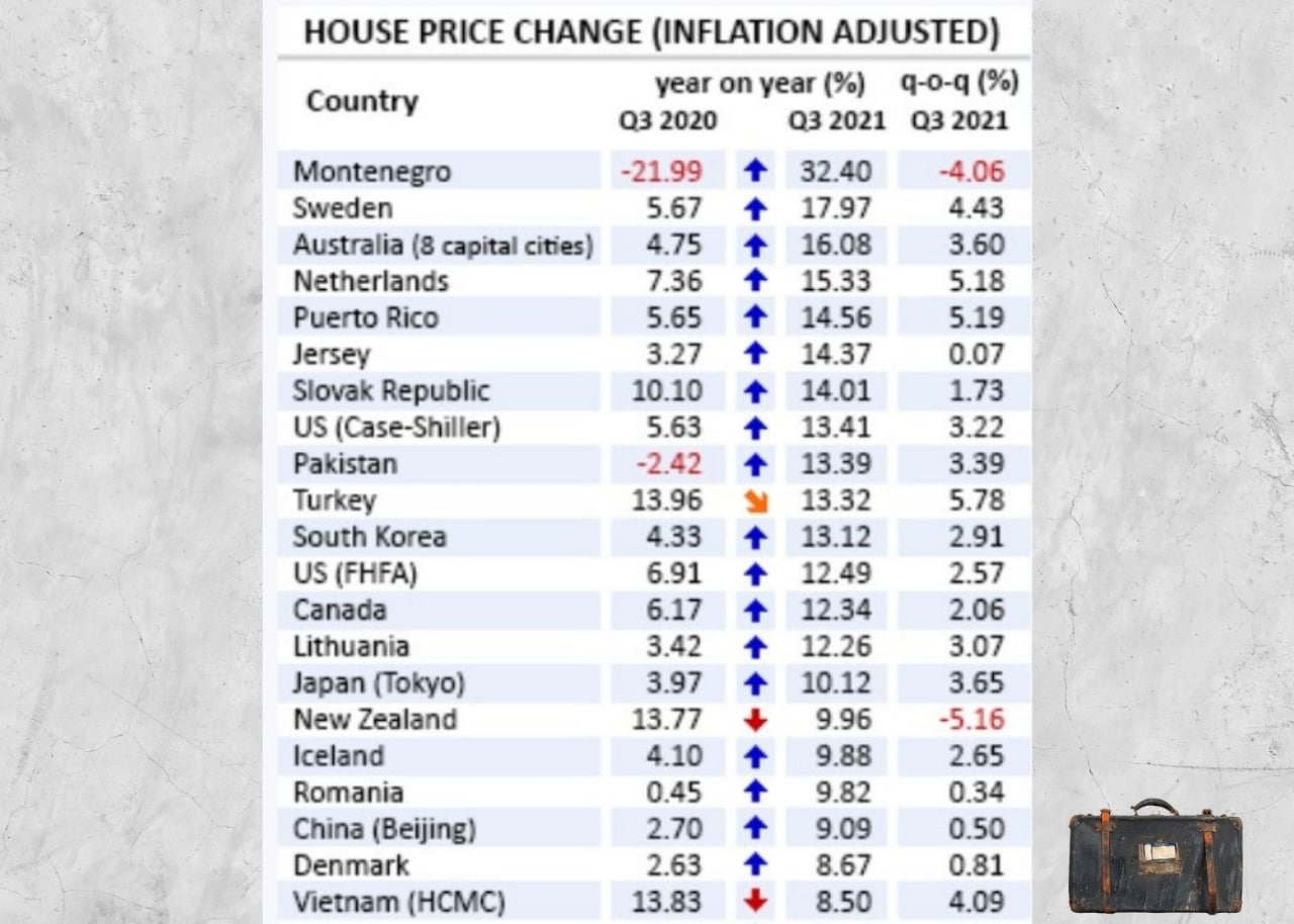 Эксперты Global Property Guide проанализировали рост цен на жилье в третьем квартале текущего года. В лидерах оказалась Черногория, ценники здесь по сравнению с аналогичным периодом прошлого года выросли на 32%. В ТОП-дорожающих как на дрожжах вошли квадратные метры Швеции (+18%), Австралии (16%), Нидерландов (15,3%), Пуэрто-Рико (14,6%).