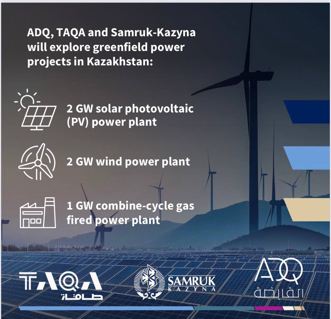 Инвесторы в лице Суверенный Фонд Абу-Даби ADQ и энергетическая компания TAQA пришли к договоренности реализовать энергетические проекты в Казахстане совместно с Самрук-Казына.