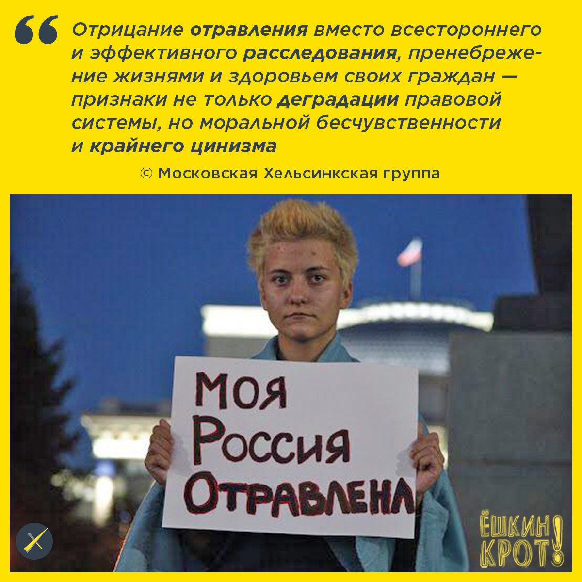 Спасение жизни и здоровья Алексея — самый главный приоритет на сегодня. Выяснение всех обстоятельств совершенного преступления, установление и наказание виновных, восстановление контроля за распространением и использованием подобных ядов, недопущение их применения в дальнейшем — важнейшие актуальные задачи не только для России, но и для всего международного сообщества» © Заявление Московской Хельсинкской группы