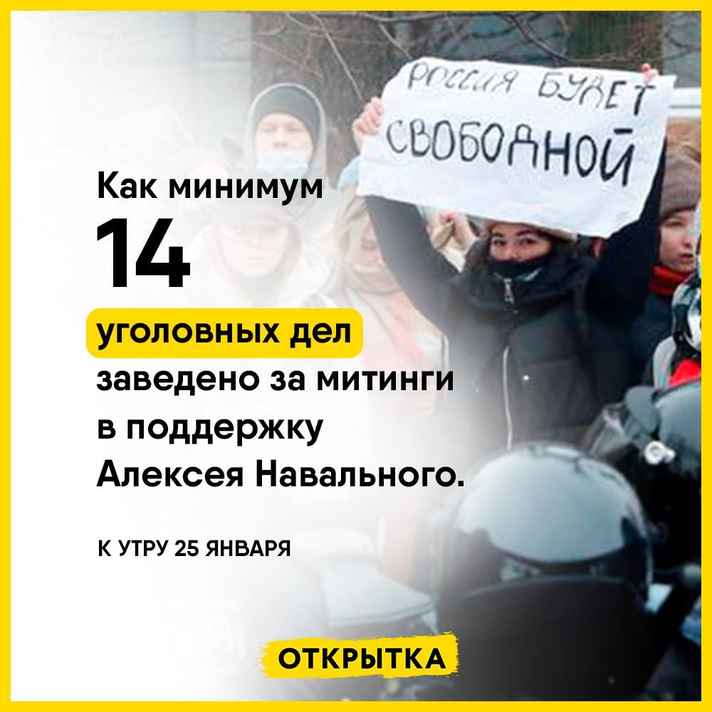 14 уголовных дел как минимум возбуждено после митингов за освобождение Навального