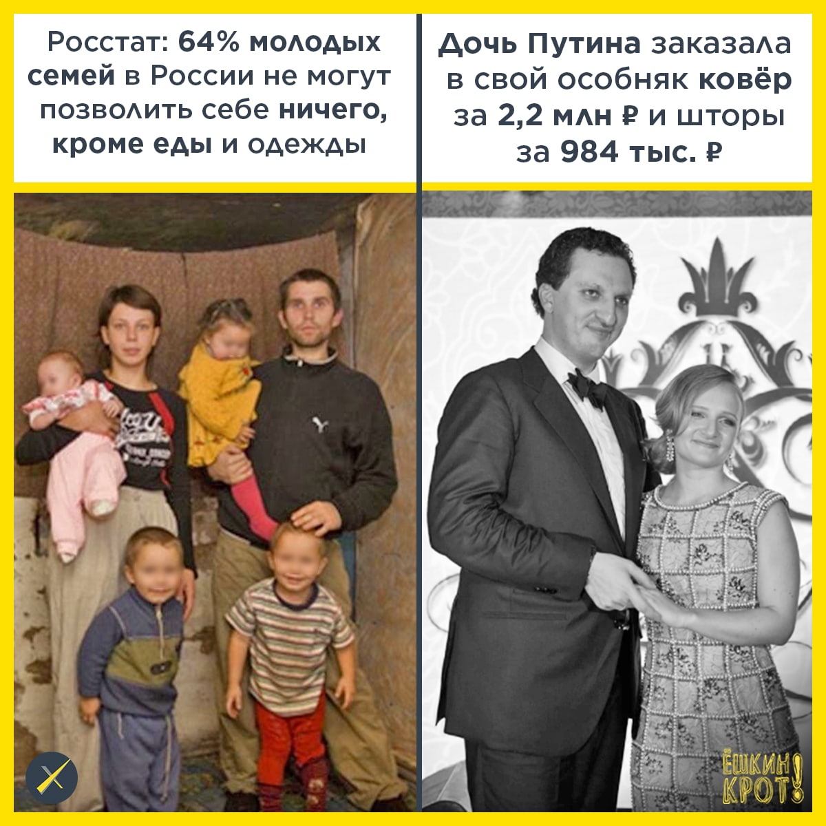 Ковёр за 2,2 млн ₽, шторы за 984 тыс. ₽, шампуни и «махровые штучки в СПА» за 738 тыс. ₽ — это лишь небольшая часть того, что дочь Путина Катерина Тихонова вместе со своим возлюбленным (на тот момент) Кириллом Шамаловым закупали в особняк на Рублёвке перед свадьбой в 2012 году. Об этом говорится в расследовании проекта «Важные истории».