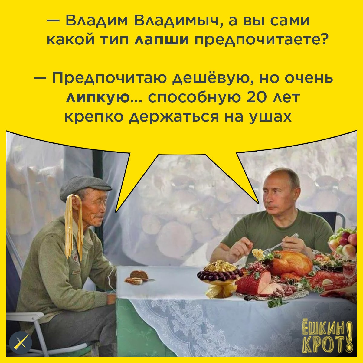 «Макаронные изделия выросли на 10,5%. И, так понимаю, что продолжают подрастать вместе с другими продуктами подобного рода. Значит, наши граждане, в большинстве своем — в Москве и в Петербурге, там, конечно… болоньезе заказывают — у нас народ попроще, да, едят макароны по-флотски, и не итальянского производства, а нашего. Ну, это недопустимо!», — возмутился «гарант», добавив, что причины роста цен — «чисто экономические».