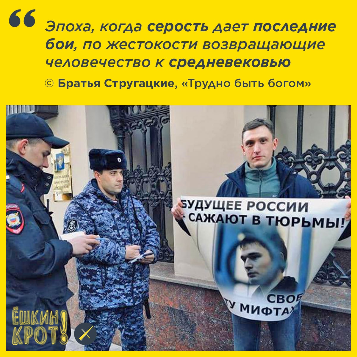 Пока в Химках в «лучших» традициях сталинских троек, наплевав на все нормы закона, «судили» Навального, в Головинском суде Москвы приговорили к 6 годам (!) колонии общего режима математика Азата Мифтахова. За что? За то, что «разбил окно» в офисе «Единой России». Ещё раз: ШЕСТЬ ЛЕТ за окно.