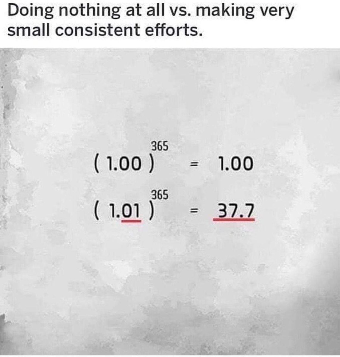 «تفاوت «هیچ کاری نکردن» و «یک کار خیلی کوچک را یک سال هر روز تکرارکردن» به زبان ریاضی.»