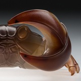 И вот вам ещё несколько фото - это фигурка обезьяны из агата, представляющая собой образец из целой серии работ Фаберже на основе одной и той же модели. Конкретно эта фигурка хранится в музее Уолтерса, Балтимор, США. И рядом - снимок одной из первых фигурок, вырезанных уже мною в 1997 году из горного хрусталя. Она очень неказиста и груба - но я и мастером тогда был начинающим, и модель, которую мне дали для работы, оставляла желать лучшего. Тем не менее не исключено, что эта хрустальная обезьянка сейчас украшает коллекцию какого-нибудь любителя Фаберже, считающего её подлинником.