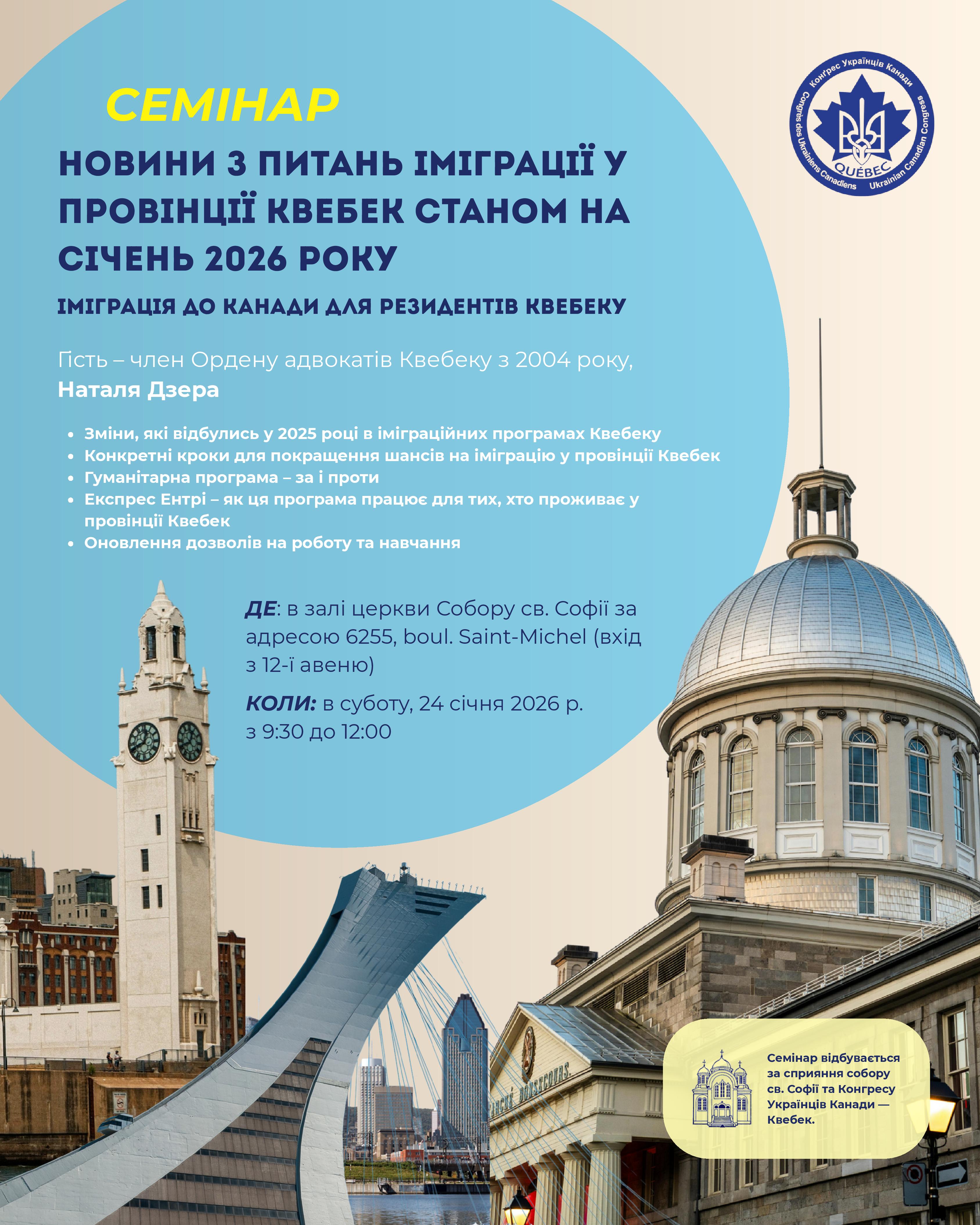 СЕМІНАР НОВИНИ З ПИТАНЬ ІМІГРАЦІЇ У ПРОВІНЦІЇ КВЕБЕК СТАНОМ НА СІЧЕНЬ 2026 РОКУ