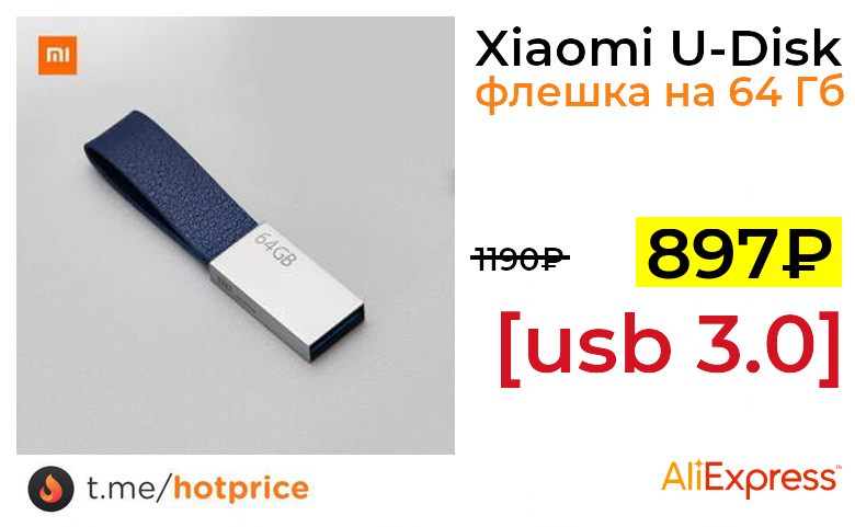 🔹Флешка Xiaomi U-Disk на 64 Гб за 897₽❗️(везде: 1.190₽+)