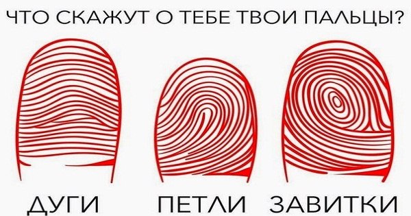Если внимательно посмотреть на подушечки пальцев, можно увидеть, что линии складываются в строгие узоры. Это могут быть дуги, петли и завитки.