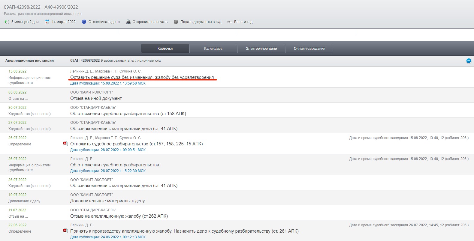 15 июня ООО «Камит-Экспорт» подал апелляционную жалобу в суд с целью оспорить данное решение.