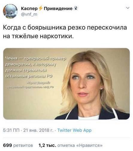 Мария Захарова хоть и делает довольно часто крайне спорные заявления, но до такого еще не дошла. Хотя она уже успела прокомментировать вброс: "Это классический фейк, фальшивая новость, дезинформация. Активно продвигается по соцсетям с такими же фейковыми комментариями". По ее словам, создатели фейка почему-то дислоцируются в Польше. Учитывая, что никаких подтверждений этому нет, данное заявление уже само может быть фейком.