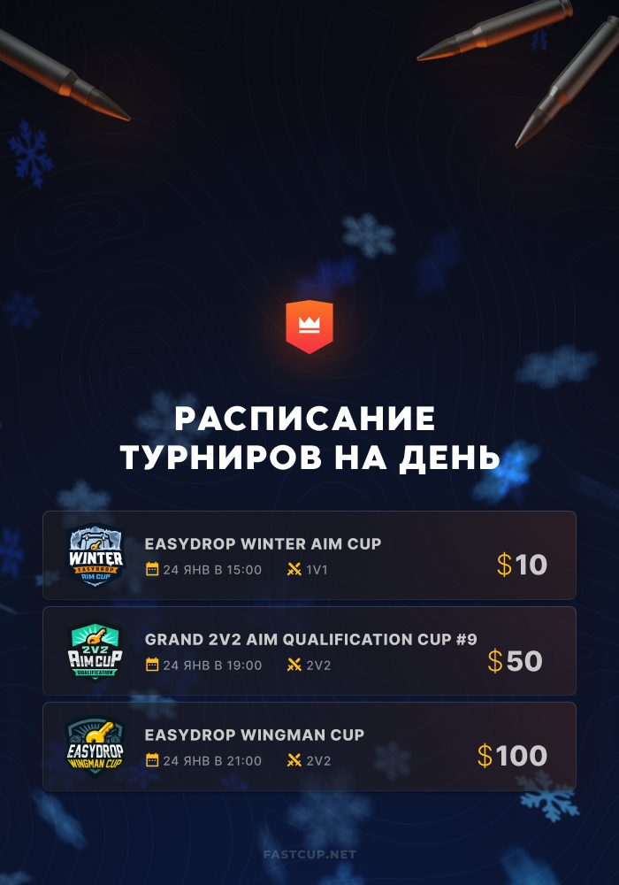 15:00 | $10 | EasyDrop Winter Aim Cup - https://csgo.fastcup.net/tournaments/1546