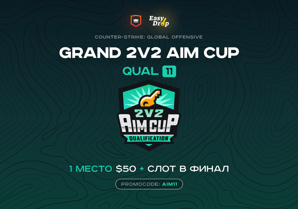 Скорее залетай на предпоследнюю квалификацию самого главного турнира месяца - Grand 2v2 AIM Cup с призовым фондом $1000! 🤑