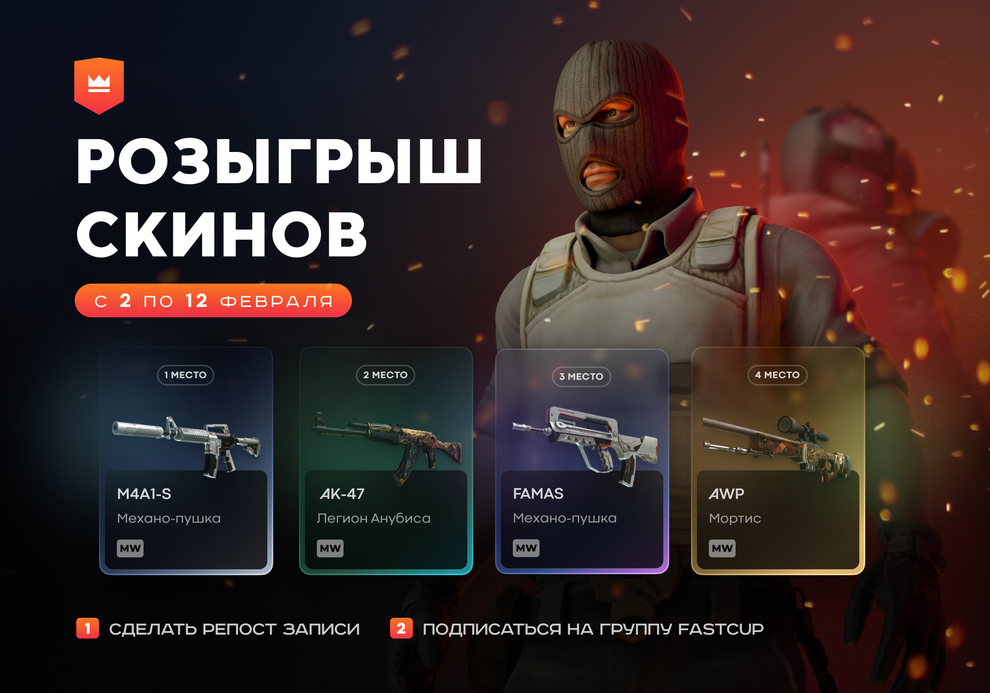 18:00 | $300 | EasyDrop Wingman Cup - https://csgo.fastcup.net/tournaments/1770