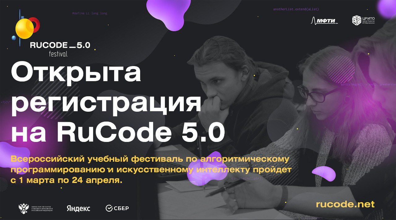 1 марта стартовал всероссийский учебный фестиваль “RuCode”, в котором может участвовать каждый. Участники проходят онлайн-курсы и интенсивы по программированию и искусственному интеллекту, а потом выходят на командный чемпионат и представляют результаты своей работы.