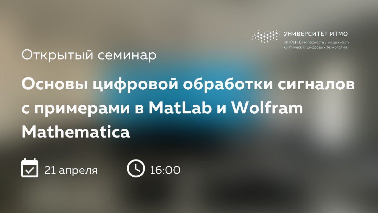 Факультет БИТ приглашает вас на открытый семинар “Основы цифровой обработки сигналов” с примерами в MatLab и Wolfram Mathematica.