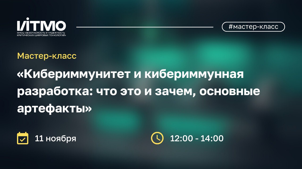 📍11 ноября в 12:00 пройдет мастер-класс «Кибериммунитет и кибериммунная разработка». Менеджер по развитию технического и кибериммунного сообщества «Лаборатории Касперского» Вячеслав Борилин расскажет о новом подходе:
