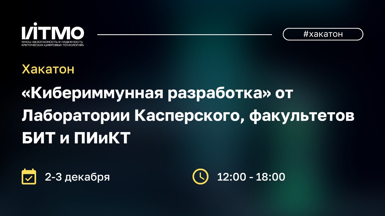 Участвуйте в хакатоне по кибериммунной разработке от «Лаборатории Касперского», факультетов БИТ и ПИиКТ. Участники получат навыки кибериммунизации систем и участие в open source-проекте для резюме. Победителей ждут призы от организаторов.