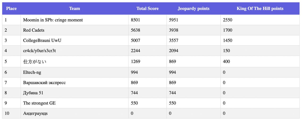 🥇«Moomin in SPb: cringe moment» — лучшая академическая CTF-команда Санкт-Петербурга