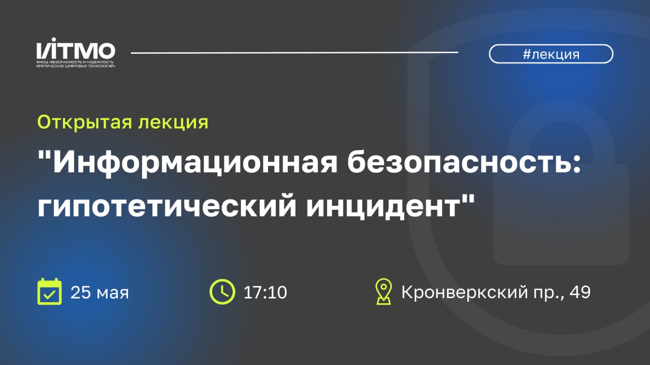 Узнайте на открытой лекции “Информационная безопасность: гипотетический инцидент”! Спикер лекции, директор департамента защиты инфраструктуры ИБ VK Илья Сафронов, расскажет: