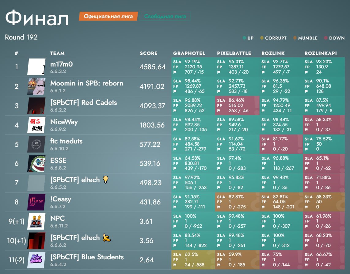 🥈Второе место завоевала команда Moomin in SPB: reborn (ИТМО), вырвав победу у команды ВКА им. Можайского в последние 45 минут состязаний