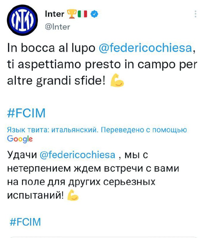 Нерадзурри выразили соболезнования, по поводу полученной травмы крестообразных связок Федерико Кьезы во вчерашнем матчи против «Ромы».