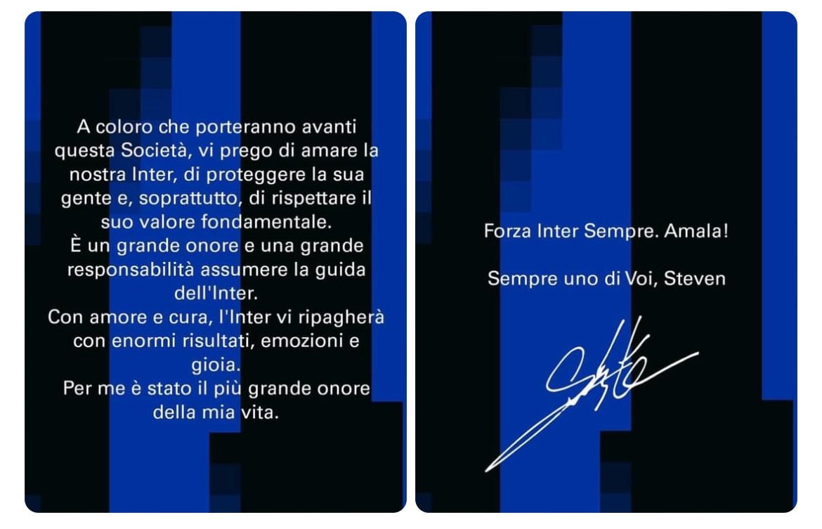 Зрештою, «Інтер» не був би «Інтером» без наших чудових уболівальників. Дякую всім за ваші добрі повідомлення. Це справді дуже багато означає для мене у ці дуже емоційні моменти. Мені не терпиться приєднатися до вас на трибунах «Сан-Сіро» і заспівати за наш «Інтер», можливо, разом із «Курва Норд».