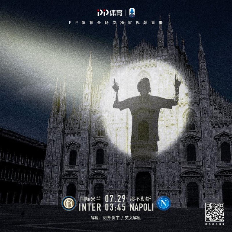 Перед матчем с Наполи телеканал, принадлежащий Suning, выдает удивительный анонс – проекцию Месси на Дуомо. Причем сначала там прямо были номер и фамилия, потом их убрали.