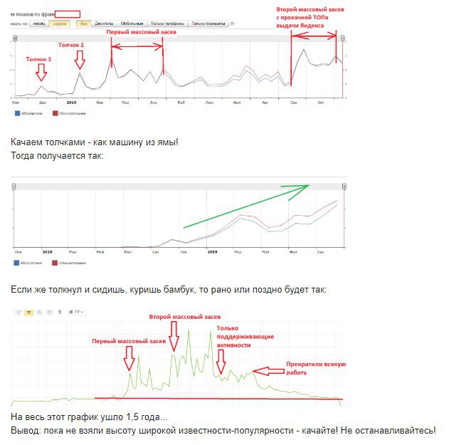 Так что если вы хотите реально серьёзно качать бренд — надо качать толчками, как машину из ямы. Если же толкнуть один раз (даже очень сильно) и расслабиться — очень скоро вернёшься обратно на дно. Качайте, не останавливайтесь!
