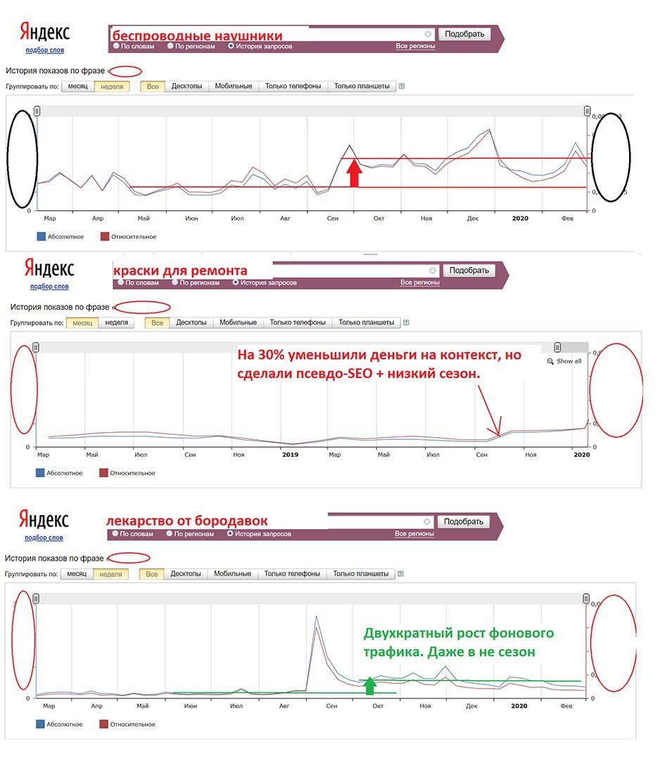Наконец, классическое SEO. Оно практически умерло как класс. Массовый исход прежних сеошников-арбайтенов в таксисты тому ярчайшее подтверждение. Ясно почему. Платишь-платишь сеошникам по 30-50 тыс. руб. в месяц за малопонятные манипуляции (никто ничего не гарантирует, но и деньги вроде небольшие) ... И вот после ГОДА таких инвестиций «радуешься», что твой сайт по ключевым запросам поднялся с 25 страницы выдачи на 5. При том что обычный потребитель (не поисковый робот-грабилка!) не идёт дальше середины второй страницы. Так что получить за свои 350-600 тыс. руб. в год вместо ноля ноль, помноженный на 5, — ну так себе радость…
