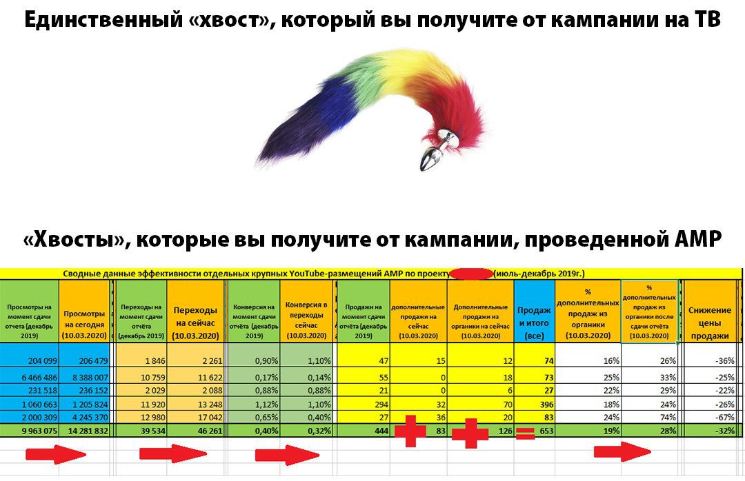 И, кстати, контекст, телевидение, баннерка, непрокручиваемая реклама на YouTube таким эффектом «послевкусия» НЕ обладают: кончил лить бабки -> сразу умерли в ноль продажи.