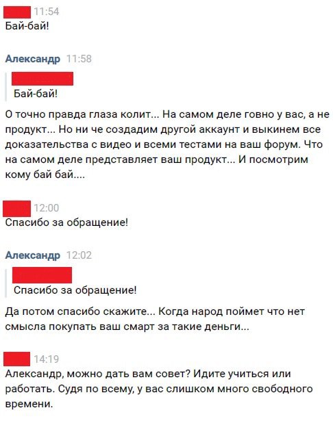 Собственно, админ группы в конечном итоге не выдержал и, наплевав на все инструкции, дал заебавшему его в край критику совет: мол, Александр, иди-ка ты уже учиться или работать, а то времени у тебя свободного чёт многовато! Александра этот коммент, кстати, несколько смутил. И он резко прикрутил тон и стал заметно вежливее. Видимо, совет попал прямо в яблочко...