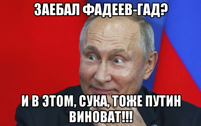 И да, при таком отношении к работе нет ничего удивительного в том, что у этой сотрудницы во всем виноват... конечно, в ее проблемах на работе виноват исключительно я, Миша Фадеев. А вот глобально у нее во всем виноват – та-да-да-дам! – Путин! Ну кто же еще, как не Владимир Владимирович? И это тоже проявление той самой совковой ментальности – даже, я бы сказал, ее, такой ментальности, первый признак.