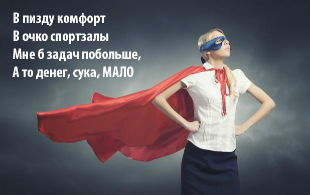 Мне тогда было 22 года. Я окончила ВУЗ и успела сделать карьеру в крупном медиахолдинге, став начальником отдела. И тут меня хантят в одну из крупнейших консалтинговых компаний РФ на должность в PR-отделе одного крутого подразделения. Но есть нюанс: у меня двойное подчинение. Непосредственно подчиняюсь директору подразделения и PR-директору всей компании. Я в эйфории, у меня пруха, там поле непаханое... И я начинаю работать так, чтобы самой нравилось. Моё основное рабочее место в PR-отделе, где кроме меня и начальника сидят ещё два человека – полиграфист и программист. И целыми сутками они занимаются… своими личными делами, а не работой. Начальник, назовем его Пупкин, вообще прокатывает свой пропуск в 9 утра и тут же отчаливает куда-то по своим делам на целый день. Это я уже потом узнала, что в тот момент он во всю готовил свой нынче всем известный финансовый проект, а работу у нас в компании держал как дойную корову. Ну чтобы бабками обеспечивала запуск его собственного проекта.:)