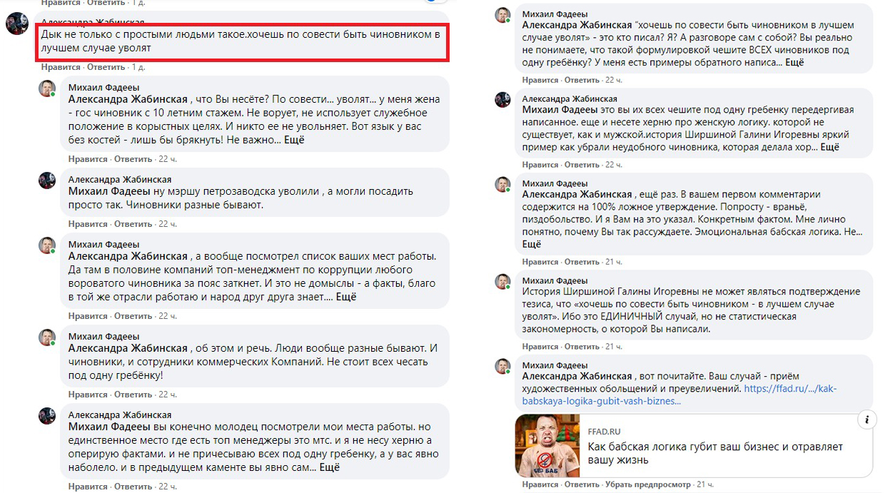 Подытожу все это так. Если тебе, дорогой читатель, хочется написать в комментах в интернете какое-нибудь негативное обобщение, связанное с чиновниками (ну прямо как дама, из-за которой этот мой пост и родился – см. переписку ниже), то... Вспомни этот мой пост. Отрой его. И перечитай хоты бы заголовок. Впрочем, хрен с ним, напишу тут еще раз: те, кто безудержно ругает «вороватых чиновников», – идите вы нахуй!