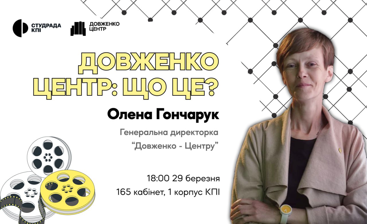 Заповнюй форму, щоб дізнатися про здобутки Довженко-Центру від Олени Гончарук 29 березня о 18:00 у 165 кабінеті 1 корпусу КПІ.