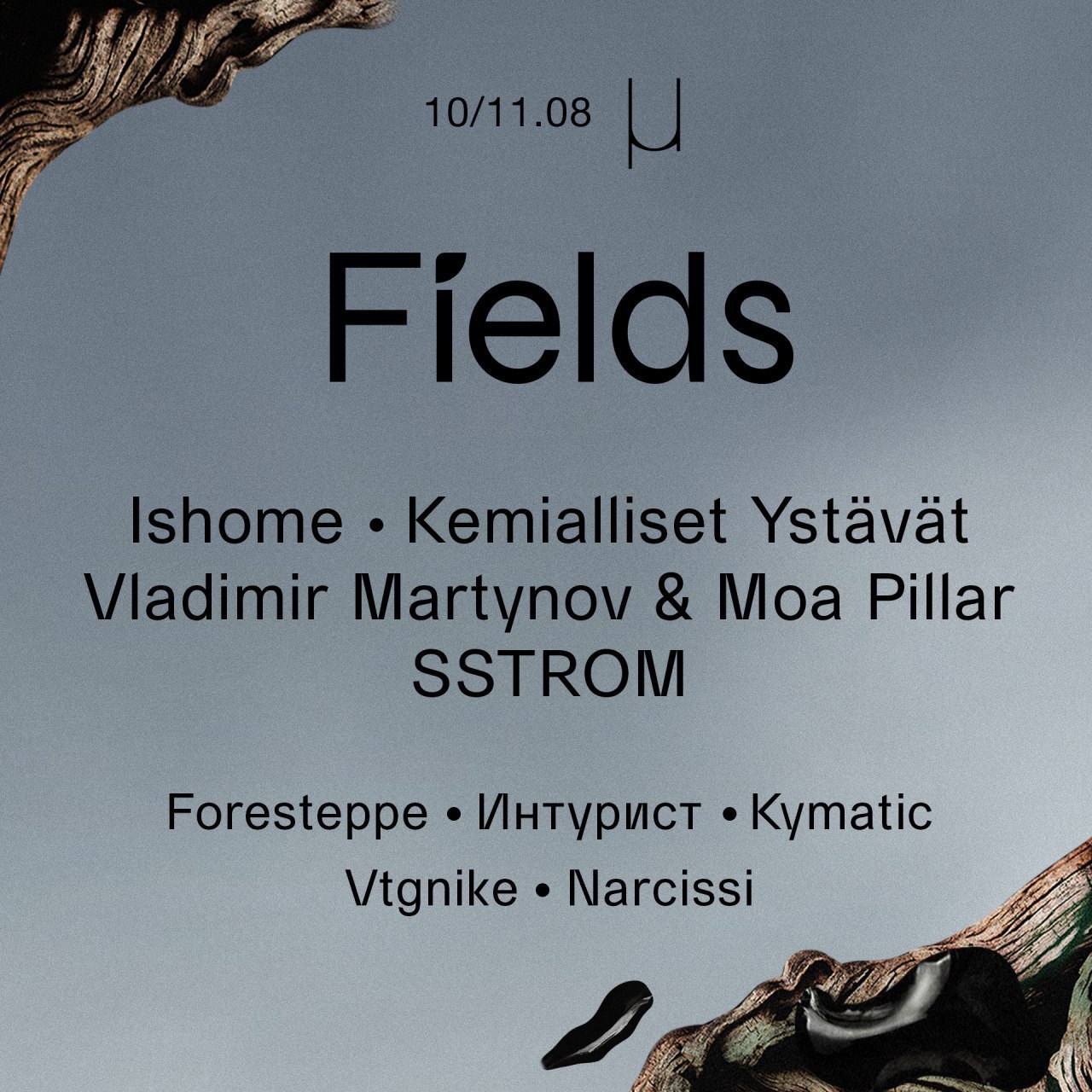 В какой-то момент, сделав себе определенную репутацию, мы поняли, что настало время пользоваться ей. Так в лайн-апы Fields со временем стали попадать наши друзья — безумно талантливые, плодовитые, уникальные, но при этом часто существующие вне информационного поля. Одним из них оказался Леша Бобровский — ученый-химик, успевший получить президентскую премию за исследования в области жидких кристаллов, но совершенно недооцененный как музыкант. В прошлом году мы сделали ему премьерное выступление на фестивале, где он исполнил акустический техно-лайв на своее гигантской ударной установке, а в этом году — решили повторить действо в Мутаборе.