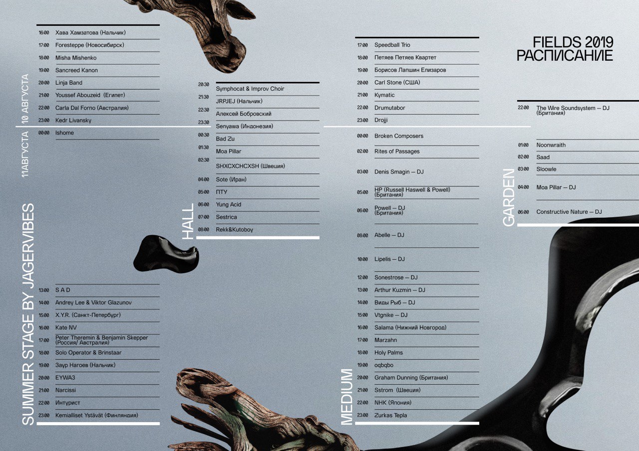 Fields — это способ провести 36 часов в «Мутаборе» как бы не на рейве, а в рамках просвещения. Рискну предположить, что кроме куратора всех артистов фестиваля никто подробно не слушал, поэтому: карманный путеводитель грибника по бескрайнему расписанию.