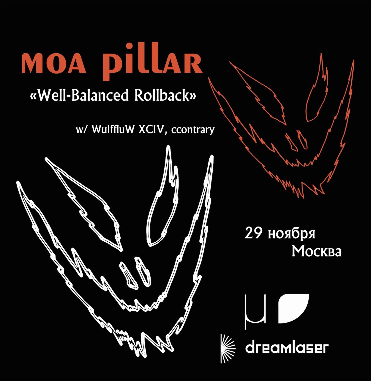 И, кстати, следом за Москвой у нас идет петербургская премьера — 30 ноября Moa Pillar представит свой альбом «Well-Balanced Rollback» в клубе КПД на территории Севкабель Порта. Вступайте в события (VK, FB) и приобретайте билеты заранее!