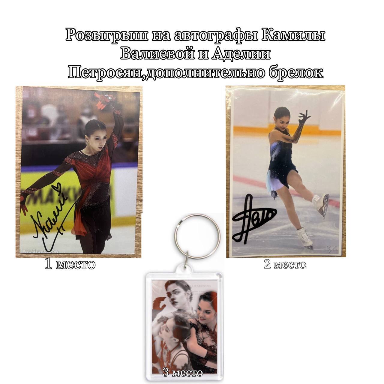 Мы с чудесными каналами хотим вас порадовать автографами Камилы Валиевой,Аделии Петросян и брелком❤️