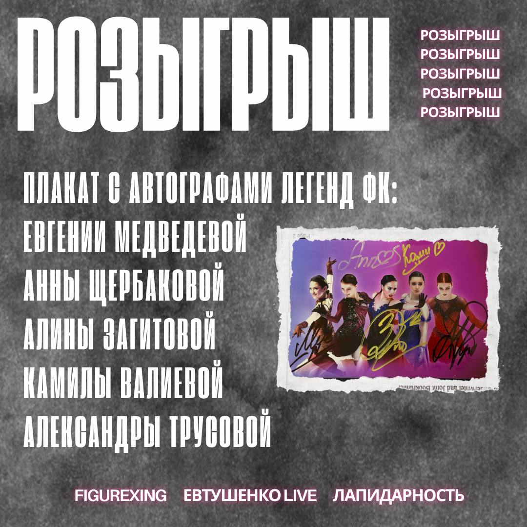 Победитель получит плакат с автографами настоящих легенд мирового женского одиночного катания: Евгении Медведевой, Анны Щербаковой, Алины Загитовой, Камилы Валиевой и Александры Трусовой!