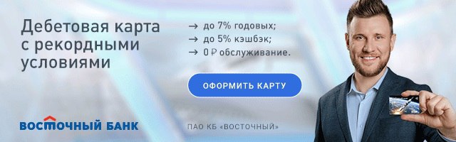 Это дебетовая карта от банка Восточный. Для хранения подушки безопасности отличный вариант. Деньги всегда будут под рукой, то есть максимально ликвидные.