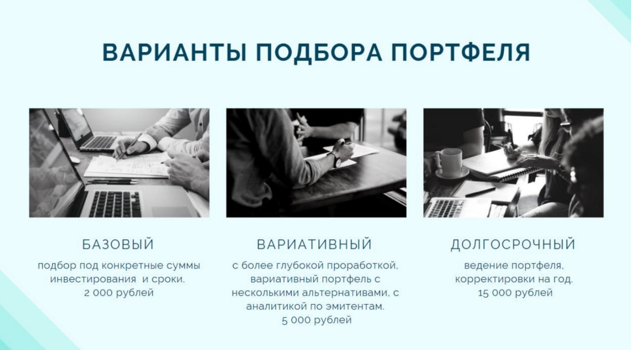 🔸 с более глубокой проработкой, вариативный портфель с несколькими альтернативами, с аналитикой по эмитентам -