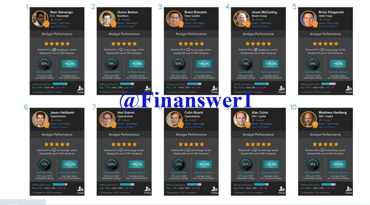 О самих аналитиках можно посмотреть на Tipranks.com , но нужно помнить, что не все аналитики одинаково полезны.