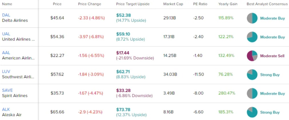 Действующие лица всё те же: American Airlines , Southwest Airlines, United Airlines Holdings, Spirit Airlines , Alaska Air Group и Delta Air Lines.
