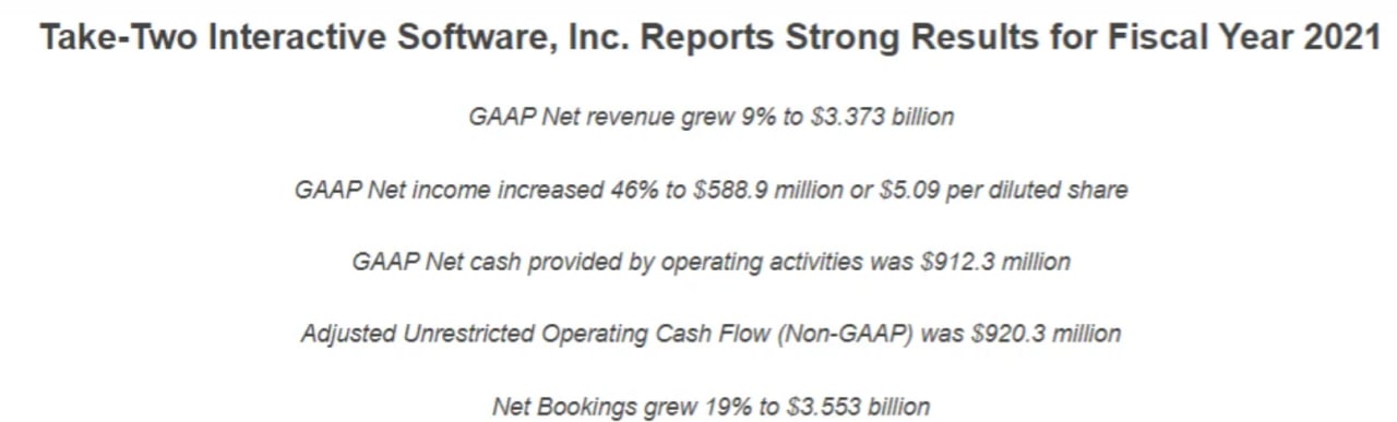 Take-Two Interactive Software $TTWO 18 мая компания после закрытия рынка представила отчёт :